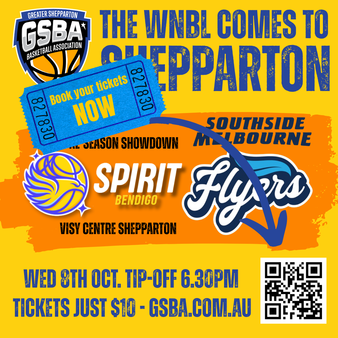WNBL is coming to Shepparton: Bendigo Spirit vs Southside Flyers in a pre season game, Wednesday 8 October at Visy Stadium, Parkside Drive Shepparton. Doors open at 5.30pm. Tip off at 6.30pm.